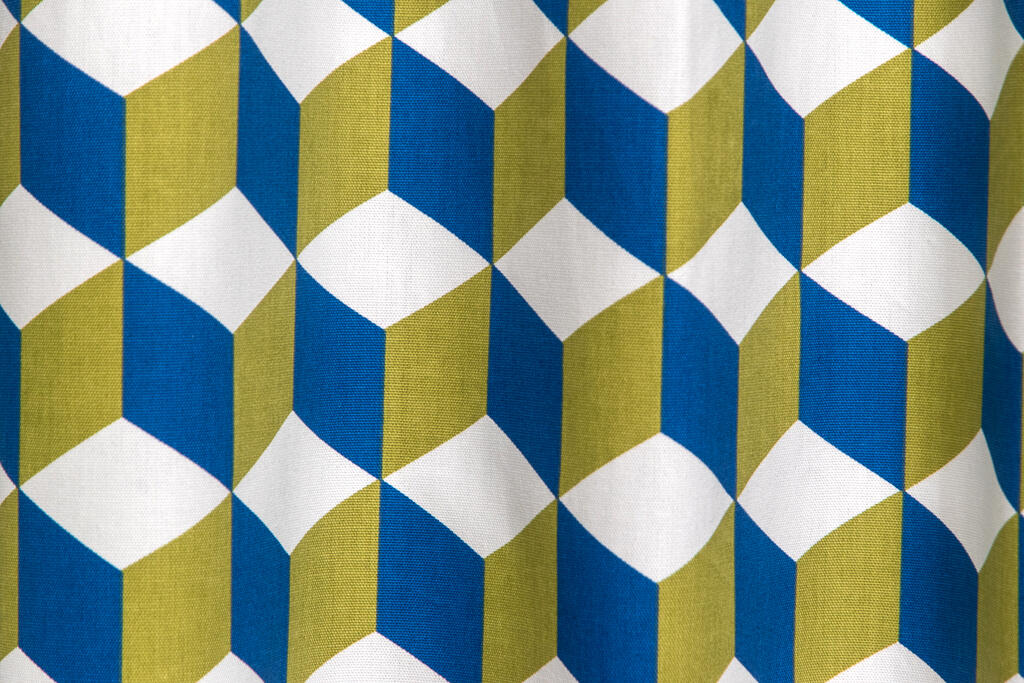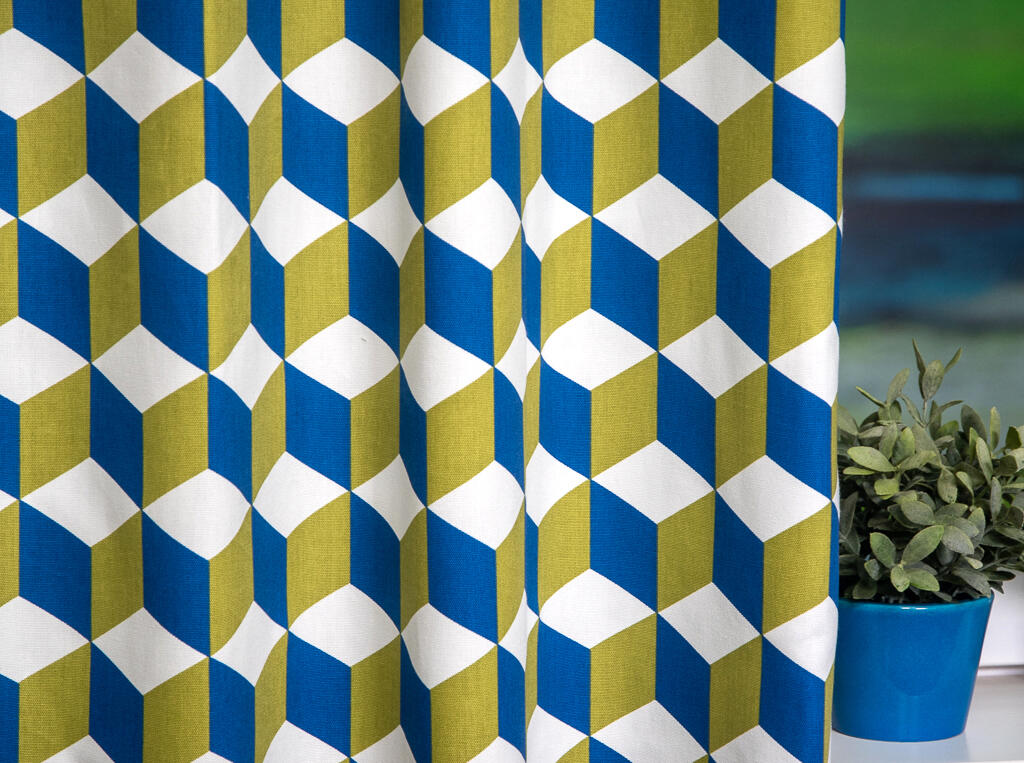 Cube Kindergordijn, dat is de naam van dit mooie gordijn. Het is een kindergordijn met allemaal vierkantjes (cubes) en het lijkt in de eeuwigheid door te gaan. Door de mooie kleuren van oranje en blauw en het rustige wit komt het kindergordijn helemaal tot leven. Het kindergordijn is gemaakt van 100% katoen hierdoor is het heerlijk soepel en zacht en kan je ook dit kindergordijn laten verduisteren zodat je in één keer klaar bent met het gordijn. Je kind kan nu heerlijk slapen in een donkere kamer. Maar als je het kindergordijn eerst wil zien en voelen dan bestel je een knipstaal en dan kun je het met eigen ogen zien. Dit is een tip van Jelmer! Hou jij ook zo van die wiskundige figuren?