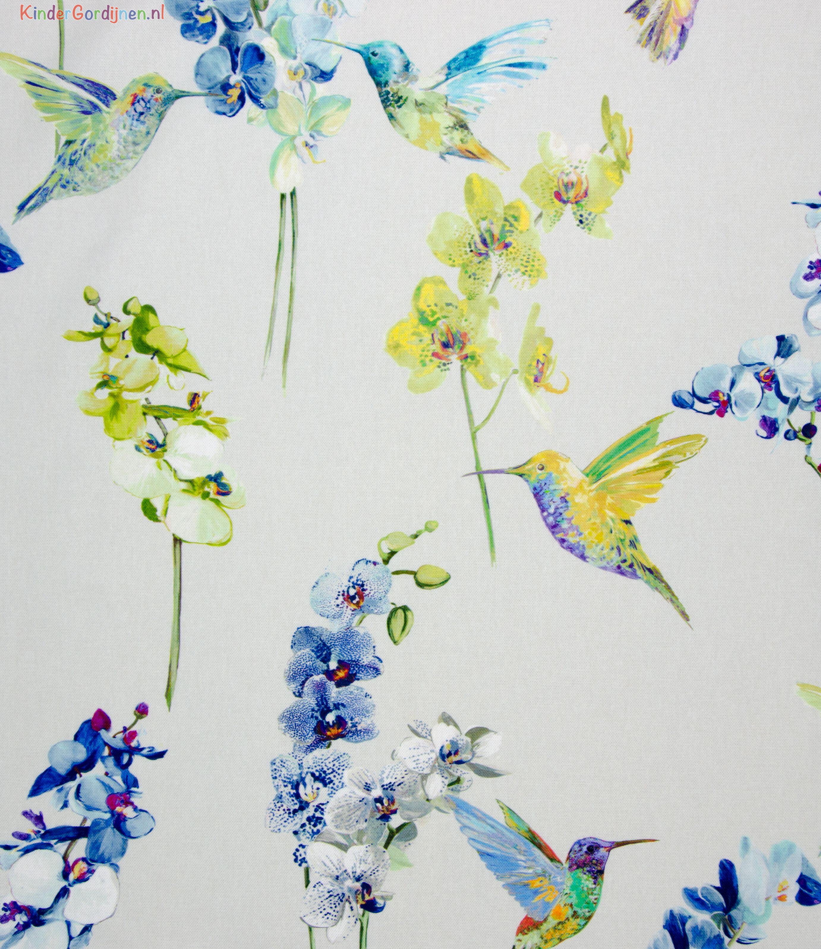 Deze gordijnstof met de naam Humming Bird is gemaakt van de beste materialen waardoor het gordijn mooi in de plooi valt.