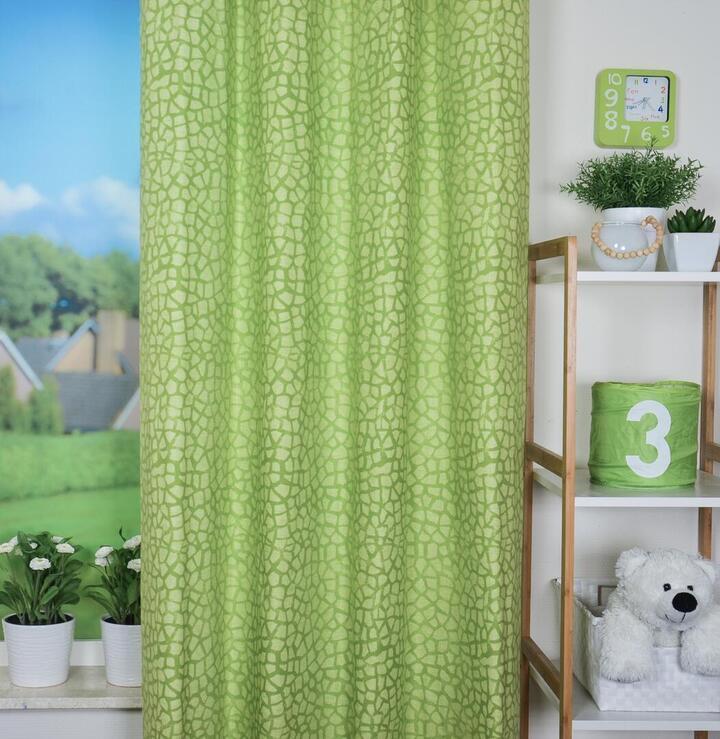 De print op dit gordijn is geïnspireerd door de natuur en laat ruimte voor interpretatie. Is het een schildpad of een giraffe? Wat denk jij? Het leuke is dat kinderen hun eigen fantasie kunnen gebruiken en hun eigen verhaal kunnen creëren rondom deze dierenprint. Het gordijn is gemaakt van prachtig, mat geweven katoen en heeft een poederige groene kleur. Deze gematigde tint is uitstekend te combineren met kiezelkleuren en andere warme grijstinten. Om de kinderkamer extra te verduisteren en zo een optimale slaapomgeving te creëren, raden we aan om het gordijn te laten voeren. Op die manier kunnen de kleintjes genieten van een goede nachtrust zonder gestoord te worden door het felle zonlicht.