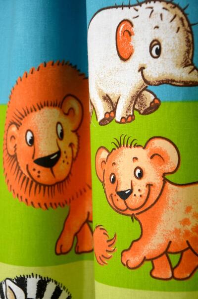 De Tisafari is een kleurrijk kindergordijn met een prachtige print van vrolijke jungledieren. Spelen in de kinderkamer is wel heel gezellig met deze aandoenlijke leeuwen, zebra’s, giraffes, olifanten en neushoorns op de gordijnen. Het Tisafari gordijn is verkrijgbaar in drie warme kleurencombinaties.