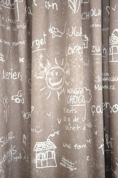 Dit gordijn lijkt op een schoolbord en is dus alleen geschikt voor kinderen die van leren houden! Moeten ze hun Frans of Duits nog een beetje bijspijkeren? Hang dan deze gordijnen op in de kinderkamer.