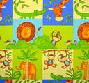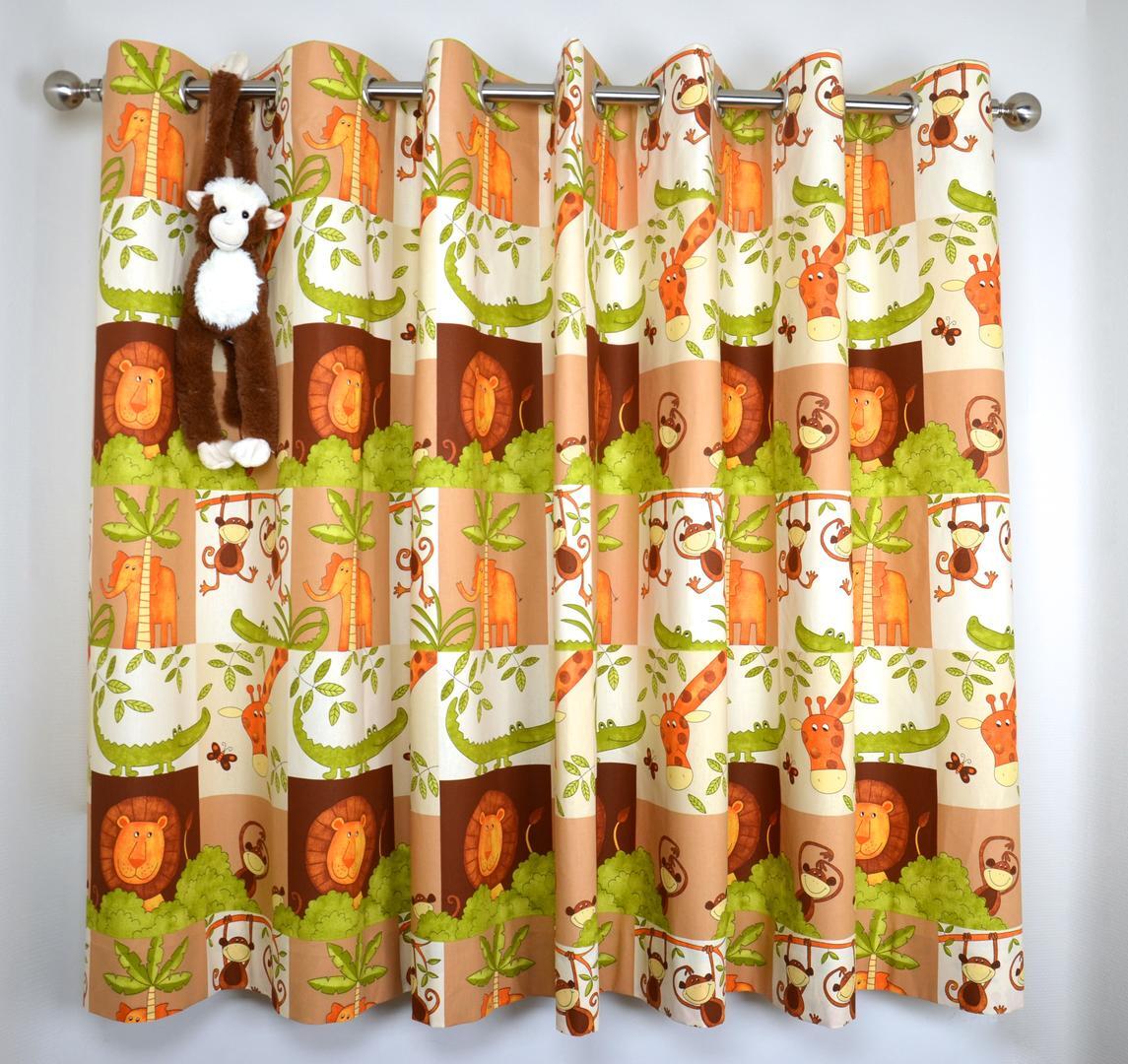 Wat een héérlijk nostalgisch gordijn! De safaridieren zijn in warme tinten afgebeeld op de stof. Deze is leverbaar in 2 kleuren. Het thema een bewezen tijdloze klassieker! De eigenwijze apen slingeren aan een liane tak en de leeuw kijkt parmantig om zich heen. De verschillende dieren zijn gedrukt op matte stof en verdeeld in blokken van 17 x 20 cm. Het royale blokpatroon geeft rust en daardoor kan het gordijn uitstekend tot de grond gemaakt worden. Voor extra verduistering graag even voeren.