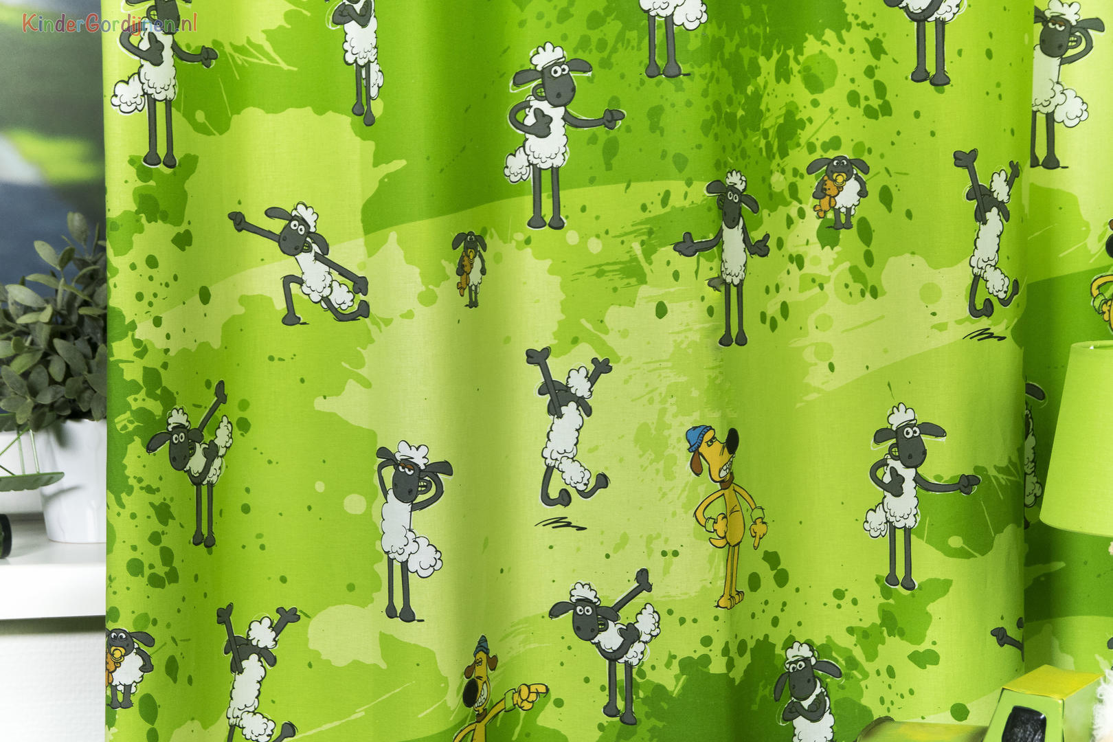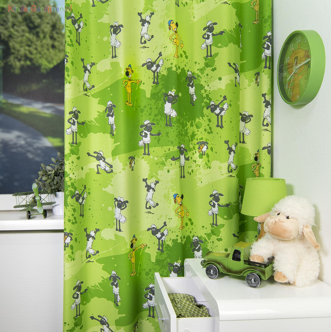 Deze gordijnstof met de naam Shaun het Schaap is gemaakt van de beste materialen waardoor het gordijn mooi in de plooi valt.