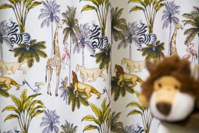 Het Simba gordijn is uitgevoerd in mooie rustige kleuren. Wilt u weten of deze kleuren aansluiten bij de rest van de kinderkamer? Dan kunt u een kleurstaaltje van de stof bij ons bestellen. U kunt dan ook meteen de kwaliteit van de stof beoordelen. De stof is van zichzelf niet verduisterend, wij kunnen de stof voorzien van extra isolatie om het gordijn verduisterend te maken. Bijkomende voordelen zijn dat de gordijnen ook warmte tegenhouden in de zomer, kou in de winter en ze werken geluidswerend. U kunt deze keus aangeven in het bestelmenu. Wilt u het thema van de Lion King nog verder laten terugkomen in de slaapkamer? Dan kunt u ook kussens laten maken van de stof. Dit sluit heel mooi aan bij de Lion King gordijnen.