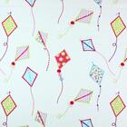 Het gordijn Up and Away brengt een luchtig en vrolijk tafereel in de kamer met zijn geborduurde vliegers die over de stof lijken te zweven. De ondergrond is een zachte, lichte stof met een fijne, duidelijk zichtbare weefstructuur die het gordijn een natuurlijke uitstraling geeft. Op deze rustige basis zijn kleurrijke vliegers geborduurd, elk met een eigen vorm en patroon. Sommige zijn gevuld met kleine bloemenprints, andere met ruitjes of golvende lijnen, wat het geheel een speels en afwisselend karakter geeft.