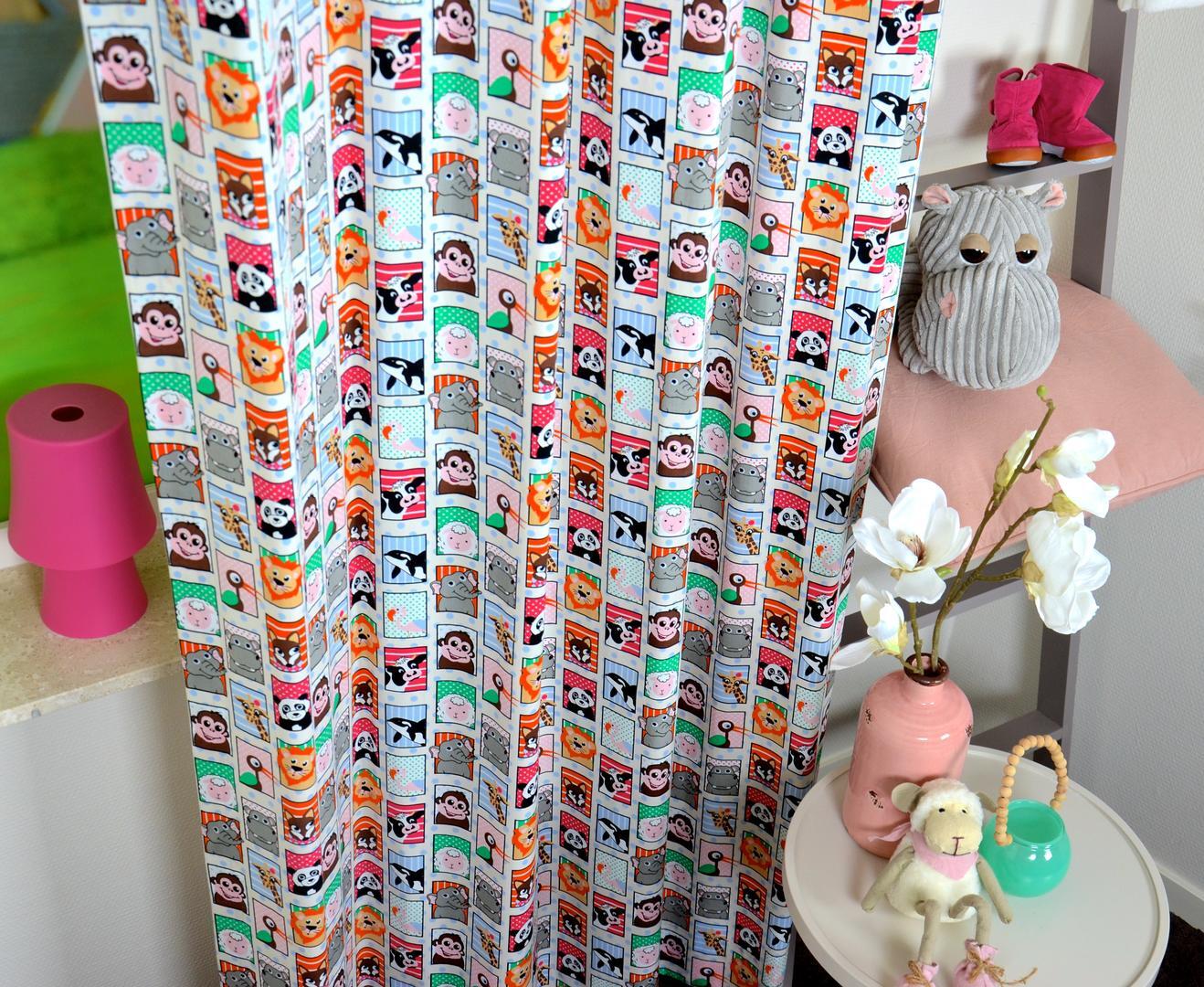 Echt een gordijn voor de dieren liefhebber! Hier zie je niet alleen SAFARI dieren, maar ook een diepzee orka en een onschuldig wit lammetje. Leverbaar in 2 verschillende kleurthema’s. Het ene gordijn heeft een crème wit met zachtblauw gestippelde ondergrond en de andere is lime groen met zachtblauw. Uitstekend geschikt voor de jongens- en meisjeskamer. De blokjes zijn 4 x 6 cm groot en gedrukt op gladde, matte stof. Wat is jouw lievelingsbeest? Desgewenst verduisterend voeren.