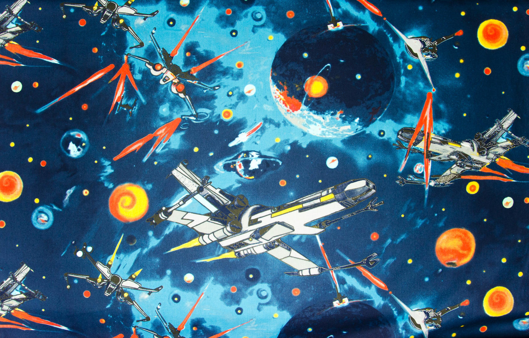 Wie kent er Star Wars niet? Met R2D2, Yoda en Luke skywalker. Maar er waren ook een paar mooie ruimteschepen in het verhaal zoals de X Wing. Deze staat heel mooi op dit kindergordijn afgebeeld. ?Het kindergordijn staat fantastisch in een kinderkamer. En het mooie is dat je hem kan laten voeren met verduisterende stof zodat je in één keer klaar bent. De stof die gebruikt is voor dit kindergordijn is 48% katoen en 52% polyester. Je vindt dit mooie kindergordijn onder de categorie kindergordijnen met print.