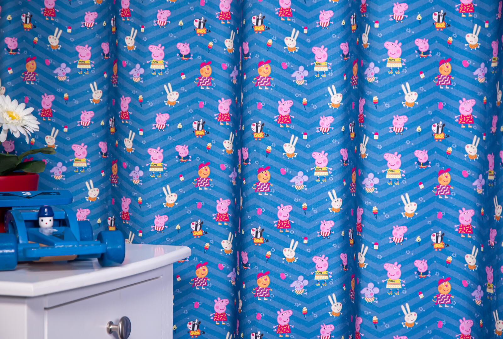 Een prachtig gordijn voor je raam! Als jij je eigen gordijnen kiest, wordt het helemaal jouw kamer. Deze gordijnstof met de naam Peppa Big is gemaakt van de beste materialen waardoor het gordijn mooi in de plooi valt. Het aantal te gebruiken banen gordijnstof van 140 cm breed wordt door ons vakkundig aan elkaar geconfectioneerd zodat het patroon van 32 cm mooi doorloopt. Laat voor een aangename isolatie en extra verduistering de gordijnen voeren: een verschil van dag en nacht!