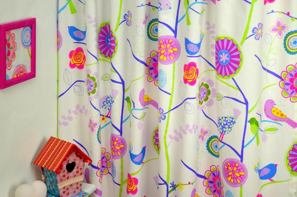 Met bloem- en bladmotieven zijn oneindige variaties aan kindergordijnen mogelijk. Van de warme roodtinten van rozen tot fleurige vormen op zachte tinten wit. Een combinatie met vlinders of vogels maakt de voorstelling extra levendig. Paddenstoelen en vrolijke bomen – al dan niet bewoonbaar – zorgen voor fantasievolle taferelen. Uilen of eekhoorntjes brengen het bos in de slaapkamer binnen.
