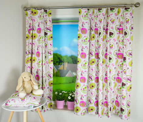 Met bloem- en bladmotieven zijn oneindige variaties aan kindergordijnen mogelijk. Van de warme roodtinten van rozen tot fleurige vormen op zachte tinten wit. Een combinatie met vlinders of vogels maakt de voorstelling extra levendig. Paddenstoelen en vrolijke bomen – al dan niet bewoonbaar – zorgen voor fantasievolle taferelen. Uilen of eekhoorntjes brengen het bos in de slaapkamer binnen.