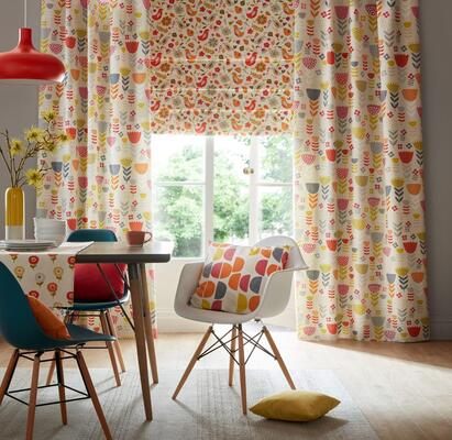 Met bloem- en bladmotieven zijn oneindige variaties aan kindergordijnen mogelijk. Van de warme roodtinten van rozen tot fleurige vormen op zachte tinten wit. Een combinatie met vlinders of vogels maakt de voorstelling extra levendig. Paddenstoelen en vrolijke bomen – al dan niet bewoonbaar – zorgen voor fantasievolle taferelen. Uilen of eekhoorntjes brengen het bos in de slaapkamer binnen.