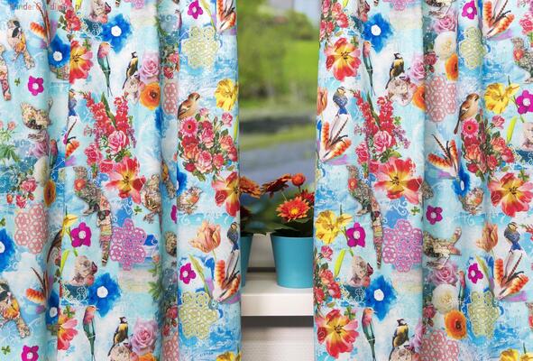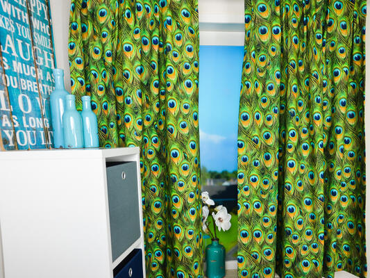 WAUW, wat blauw! Het lijkt net of je echt tussen de tropische vissen en het koraal in het kraakheldere water zwemt. Zo intens zijn de kleuren op de kindergordijnen met digital print. Alsof je erbij bent, tussen de paarden op de prairie, of in het zonnestelsel waar je Mars, Venus, de Aarde en andere planeten tegenkomt, terwijl je de sterren in de verte ziet schitteren. Wat een kleurenpracht heeft dat gordijn met al die pauwenogen! En kijk dat kleine hertje met zijn grote ogen… Met digital print ben je in je eigen kamer in een andere wereld.
