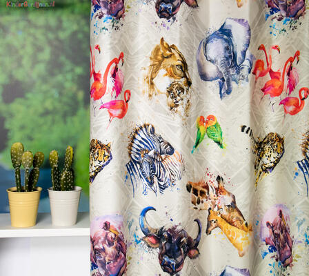 Op safari in je slaapkamer? Dankzij deze kindergordijnen kan dat veilig.  Wat doe je dus als de leeuw en de neushoorn je tegelijk aankijken? Je zegt: “Slaap lekker, tot morgen!” Ook jungle-gordijnen zijn er in vele varianten, van wild avontuurlijk tot lieflijk en speels. Gordijnen met giraffen, zebra’s en olifanten zijn geliefd. Zoekt u gordijnen voor de babykamer, kijk dan eens naar de schattige baby-olifantjes of andere ‘zachtaardige’ wilde dieren …
