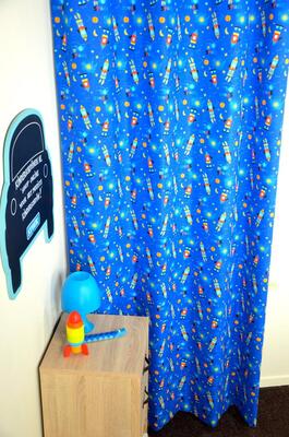 Kijk voor accenten die passen bij het gordijnen met sterren ook eens naar de mogelijkheden met meubels en accessoires voor de inrichting van de kinderkamer. Laat voor een aangename verduistering van de kamer de stof voeren: een verschil van dag en nacht.