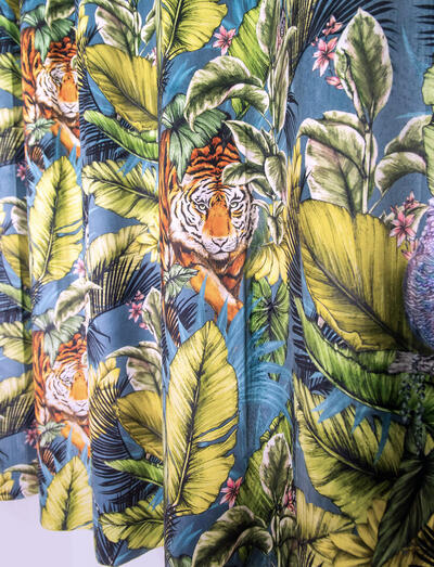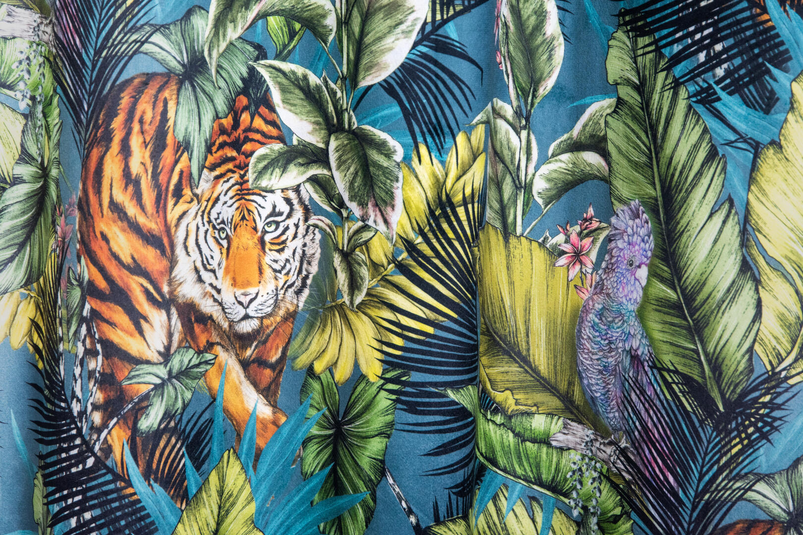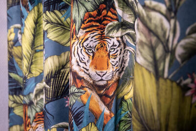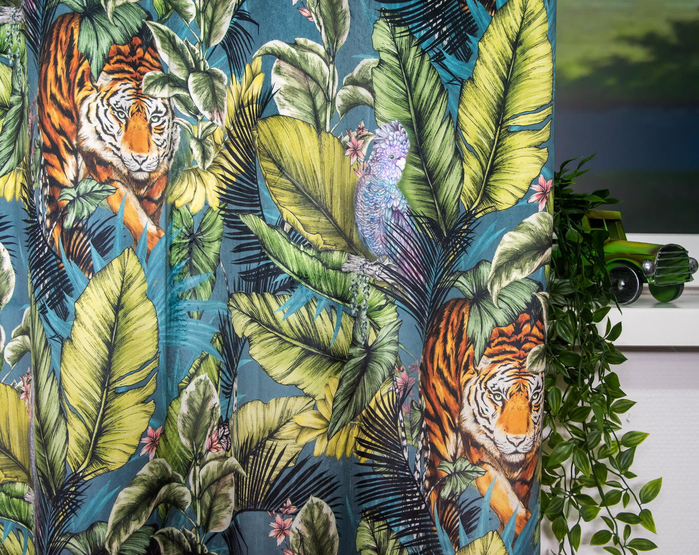 De haarscherpe tijgers zijn zo’n 20cm groot en geprint op fluweel zachte glanzende gordijnstof.