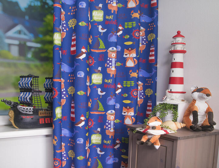 Dierengordijn dat voor de kleine vent lekker stoer is. Er is zoveel om naar te kijken en je fantasie de vrije loop te laten. Kapitein beer is 22 cm groot en hij komt piraat slimme vos regelmatig tegen. Beide willen jou graag naar dromenland begeleiden op hun zeewaardig jacht. Deze vuilwerende stof maakt je slaapkamer i.c.m. een verduisterende voering direct aangenaam donker, dat is voor een plezierige nachtrust extra fijn! De stof valt soepel en de achterzijde is egaal gebroken wit. Maak jij het zee- of strandthema met leuke accessoires compleet?