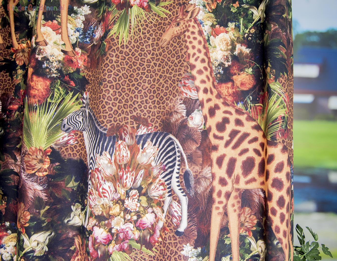 Een prachtig gordijn voor je raam! Als jij je eigen gordijnen kiest, wordt het helemaal jouw kamer. Deze gordijnstof met de naam Tropical Master is gemaakt van de beste materialen waardoor het gordijn mooi in de plooi valt. Het aantal te gebruiken banen gordijnstof van 140 cm breed wordt door ons vakkundig aan elkaar geconfectioneerd zodat het jungle en safari patroon van 132 cm mooi doorloopt. Laat voor een aangename isolatie en extra verduistering de gordijnen voeren: een verschil van dag en nacht!