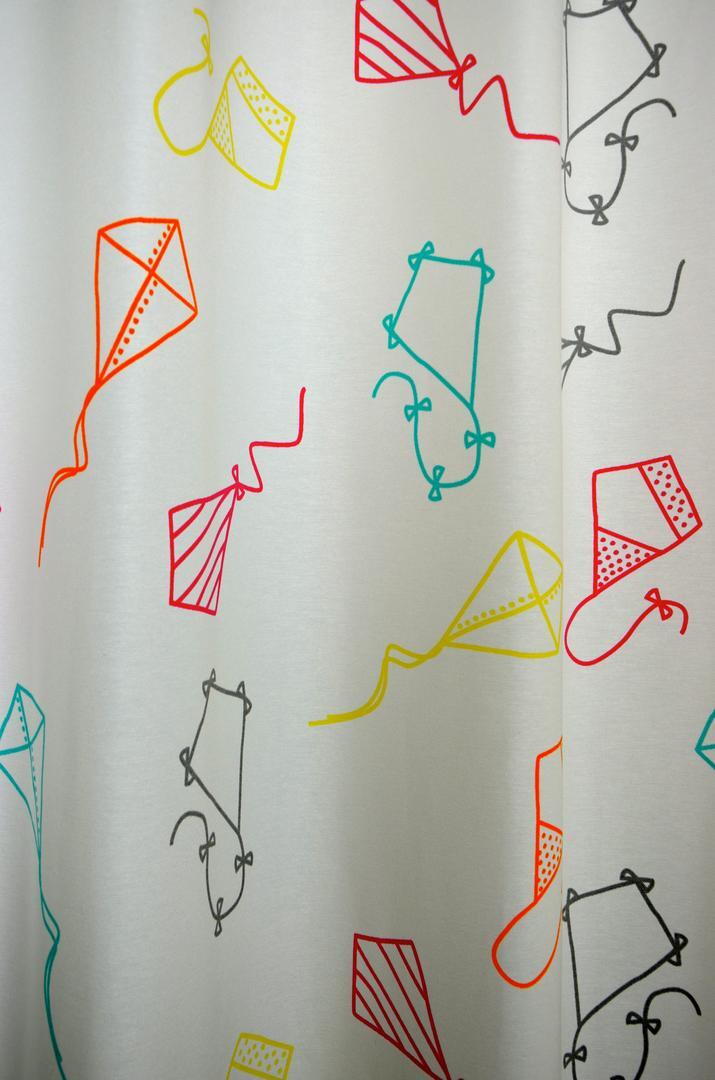 Dit is ons kindergordijn Kite, een ware eyecatcher voor elke kinderkamer! De vrolijke vliegers, gedrukt op een subtiele matte grijze kleur, brengen een speels en levendig element in de kamer. Bovendien is dit gordijn verkrijgbaar met een mat witte onderkleur met vliegers met een prachtige, gevarieerde kleurstellingen die ongetwijfeld de aandacht zal trekken. Met een flinke vlieger, inclusief staart van maar liefst 25 cm lang, maakt dit royale patroon het mogelijk om het gordijn prachtig tot op de grond te laten vallen. De stevige, sportieve stof kan zelfs van een verduisterende voering worden voorzien, waardoor het zowel stijlvol als functioneel is. Laat je verbeelding de vrije loop en geniet van heerlijke dromen onder dit unieke kindergordijn!
