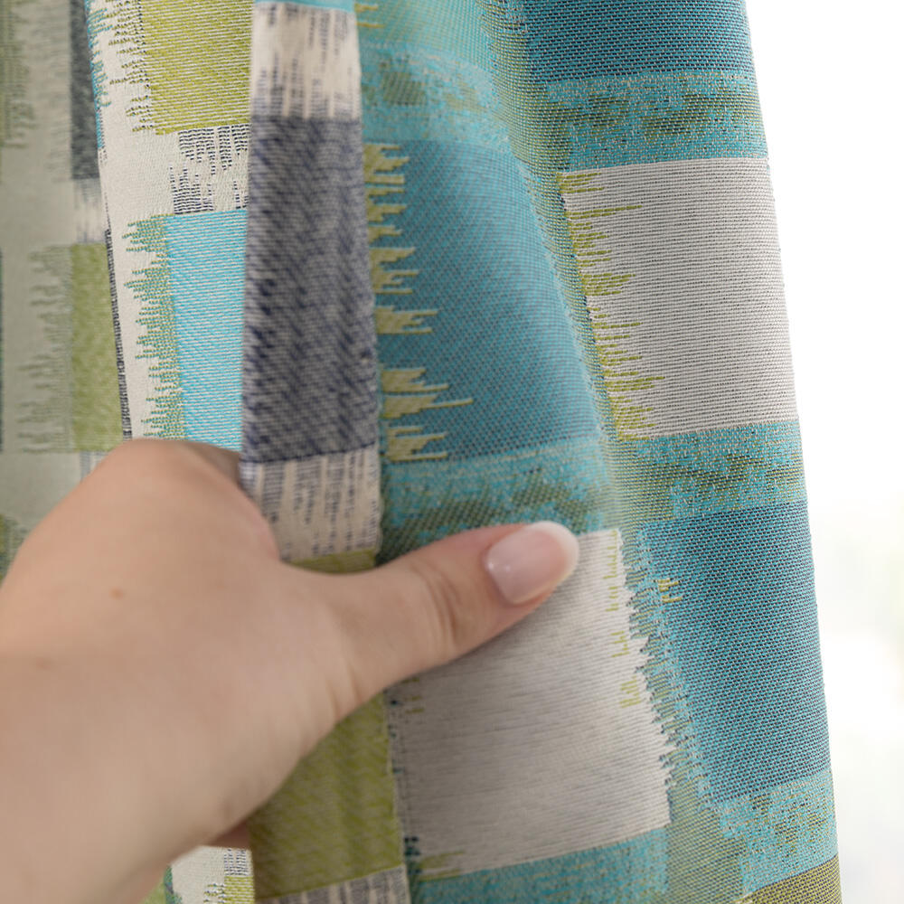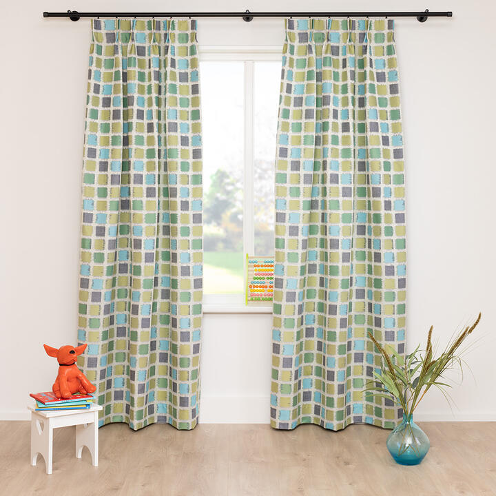 Een kindergordijn met vierkante vormen in frisse en speelse kleuren. De stof is gemaakt van gerecyclede garens en valt nonchalant en royaal. De stof is ook ideaal voor een vouwgordijn en verkrijgbaar in twee kleuren.